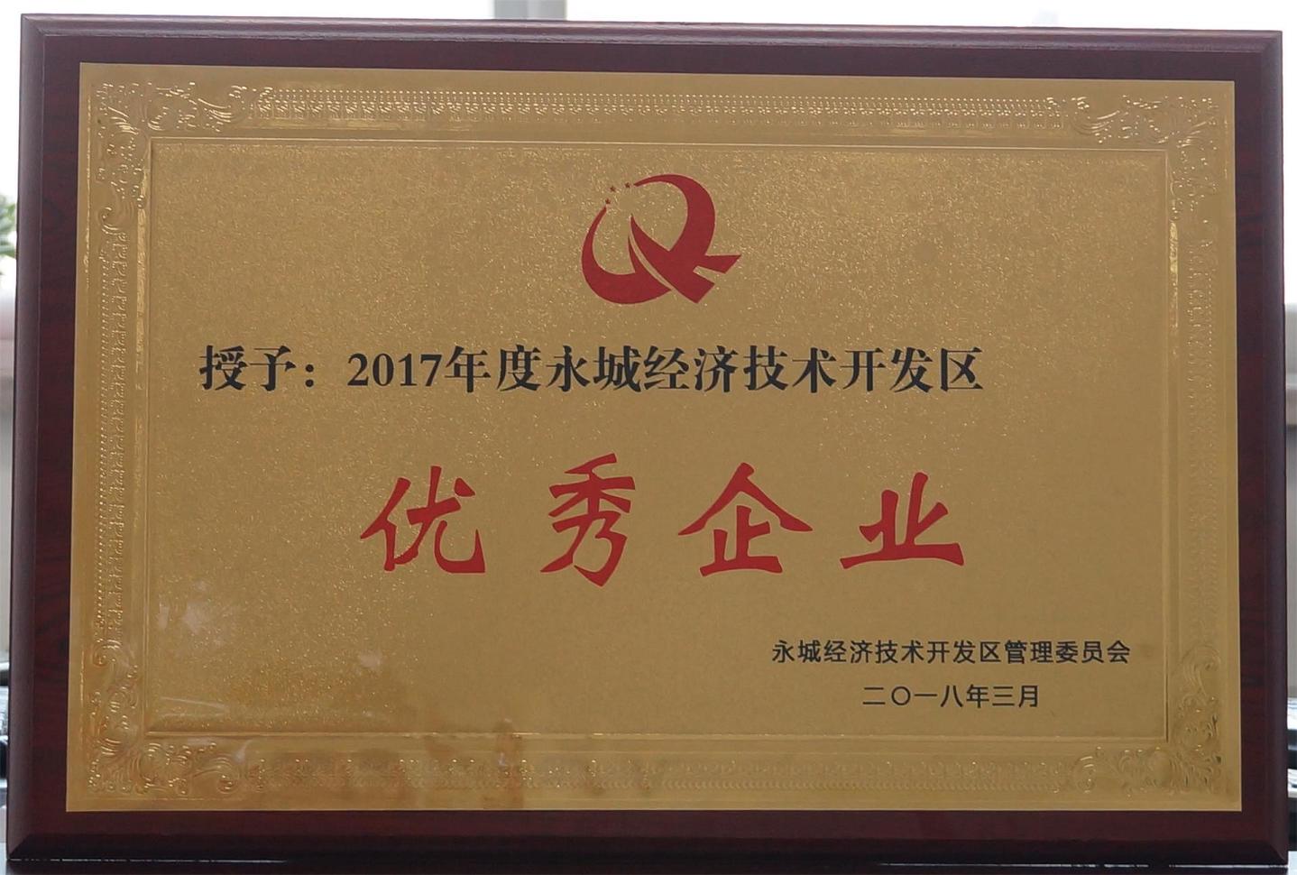 2018年3月10日公司喜獲“永城市經(jīng)濟(jì)技術(shù)開發(fā)區(qū)2017年度優(yōu)秀企業(yè)”榮譽(yù)稱號(hào)