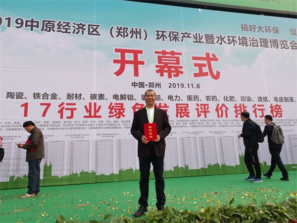 11月8日上午,2019年中原經(jīng)濟(jì)區(qū)(鄭州)環(huán)保產(chǎn)業(yè)暨水環(huán)境治理博覽會(huì)在鄭州國(guó)際會(huì)展中心隆重開(kāi)幕,同時(shí)河南省生態(tài)環(huán)境廳就17個(gè)行業(yè)綠色發(fā)展評(píng)價(jià)排行榜在開(kāi)幕式上舉行發(fā)布儀式。閩源鋼鐵集團(tuán)有限公司以優(yōu)異的綠色化改造和環(huán)境保護(hù)工作成績(jī)榮獲2019年第二期河南省鋼鐵行業(yè)綠色發(fā)展評(píng)價(jià)排行榜第三名。公司總經(jīng)理助理吳天國(guó)代表公司出席會(huì)議領(lǐng)獎(jiǎng),并作為鋼鐵行業(yè)示范企業(yè)代表接受了國(guó)家發(fā)改委中宏網(wǎng)和中國(guó)網(wǎng)記者專訪。