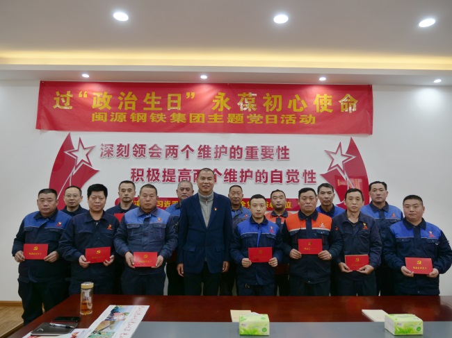 12月6日上午,閩源鋼鐵集團有限公司黨支部組織開展了以“過政治生日,永葆初心使命”為主題的黨日活動,為14名新黨員集體過“政治生日”,提醒他們不忘初心使命,勇敢擔當作為,齊心協(xié)力開創(chuàng)工作新局面。