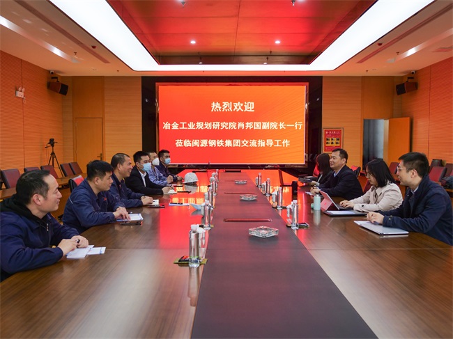 4月13日,冶金工業(yè)規(guī)劃研究院副院長(zhǎng)肖邦國(guó)帶領(lǐng)標(biāo)準(zhǔn)中心、低碳中心專(zhuān)家團(tuán)隊(duì)一行蒞臨閩源鋼鐵集團(tuán)交流指導(dǎo)綠色低碳工作,受到了董事長(zhǎng)兼總經(jīng)理劉建斌,副總經(jīng)理鞠恒軍、林華、吳天國(guó)等領(lǐng)導(dǎo)的熱情接待。