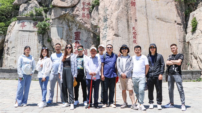 6月4日一早,大家沐浴在清新的空氣之中,邁著雀躍的腳步,從中天門開始,一起向玉皇頂進發(fā)。爬泰山是個很漫長、很艱苦的過程,需要大家一步一個臺階,不停地向上攀登。登山中大家互相鼓勵,互幫互助,隨山移步,欣賞云步橋旁飛瀑倒懸的奇觀景象,領略十八盤山路的雄偉震撼,品讀古代王侯將相、文人墨客在峭壁上留下的石刻文字,感受泰山源遠流長、博大精深的中華文化內(nèi)涵。