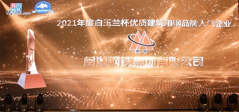 祝賀閩源鋼鐵集團(tuán)榮獲2021年“白玉蘭”杯優(yōu)質(zhì)建筑用鋼品牌人氣企業(yè)稱號(hào)
