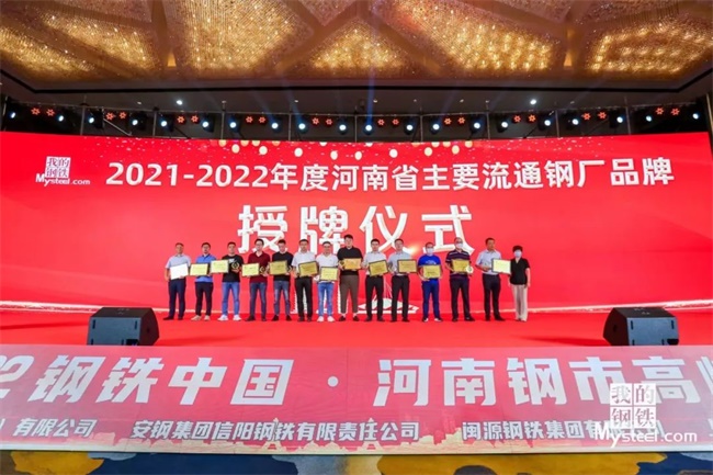 7月18日,“2022鋼鐵中國?河南鋼市高峰論壇”在鄭州富力萬達文華酒店隆重召開,河南省內(nèi)及周邊省份的鋼鐵生產(chǎn)企業(yè)、流通企業(yè)、終端企業(yè)和研究機構(gòu)等五百多人參加,公司銷售部部長劉文興,銷售經(jīng)理黃洋洋、許昊易參加會議。會上,公司“豫閩”品牌被授予“2021-2022年度河南省主要流通鋼廠品牌”榮譽稱號。