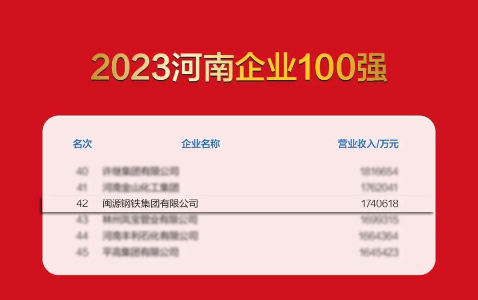 閩源鋼鐵集團(tuán)再次登榜2023河南企業(yè)100強(qiáng)和2023河南制造業(yè)企業(yè)100強(qiáng)。
