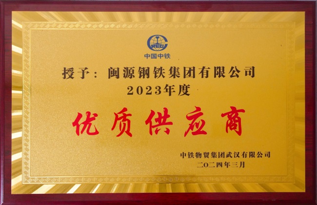 近日,閩源鋼鐵集團憑借良好的產(chǎn)品質(zhì)量和優(yōu)良的產(chǎn)品服務(wù),被中鐵物貿(mào)集團武漢有限公司授予2023年度“優(yōu)質(zhì)供應(yīng)商”榮譽稱號。