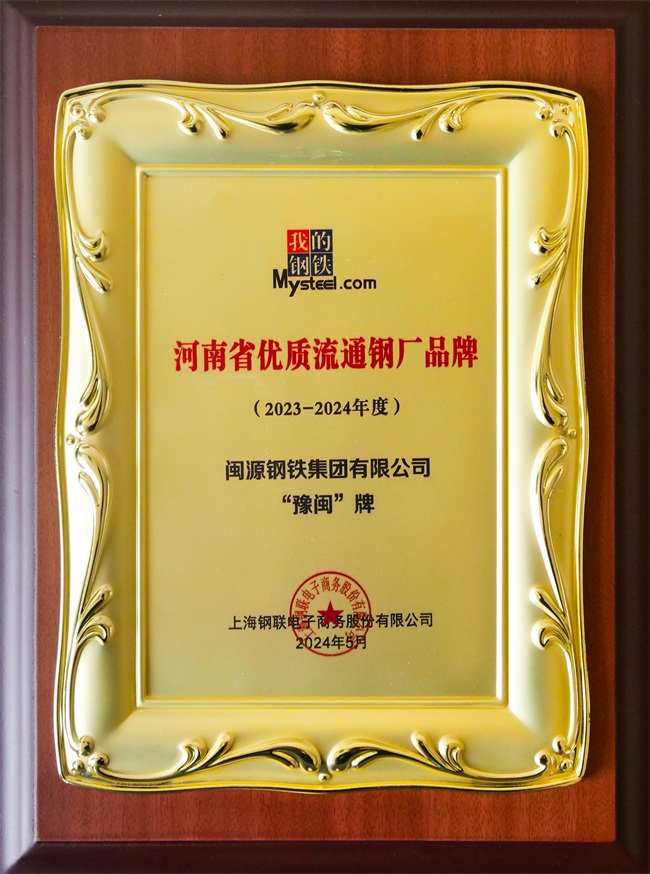 公司榮獲2023-2024年度“河南省優(yōu)質(zhì)流通鋼廠品牌 ”稱號
