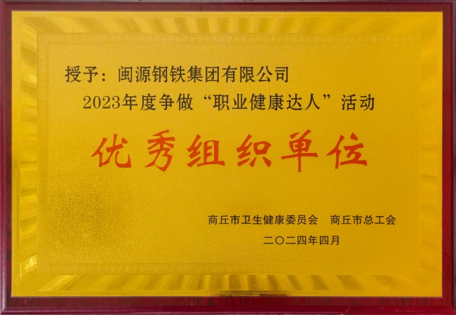 公司榮獲商丘市2023年度爭做“職業(yè)健康達人”活動 “優(yōu)秀組織單位”稱號