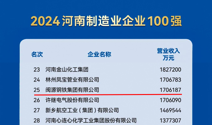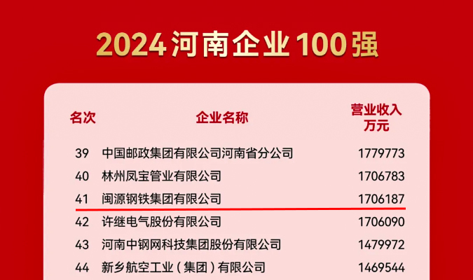 重磅發(fā)布2024河南企業(yè)100強閩源鋼鐵集團位列