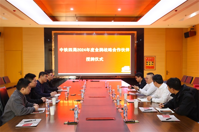 中鐵四局物資公司副總經(jīng)理周黔一行到公司 舉行“金牌戰(zhàn)略合作伙伴”授牌儀式