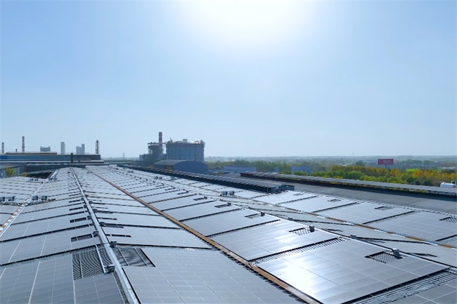 項目按照“自發(fā)自用,余電上網(wǎng)”模式,采用夾具將光伏組件及導軌固定方式進行安裝,保證了在太陽高度角最低的冬至日時,所有組件仍有6小時以上的日照時間。該項目設計使用年限25年,理論年均發(fā)電量約600萬kWh,年減排二氧化碳約4900噸,為公司綠色低碳發(fā)展添磚加瓦。
